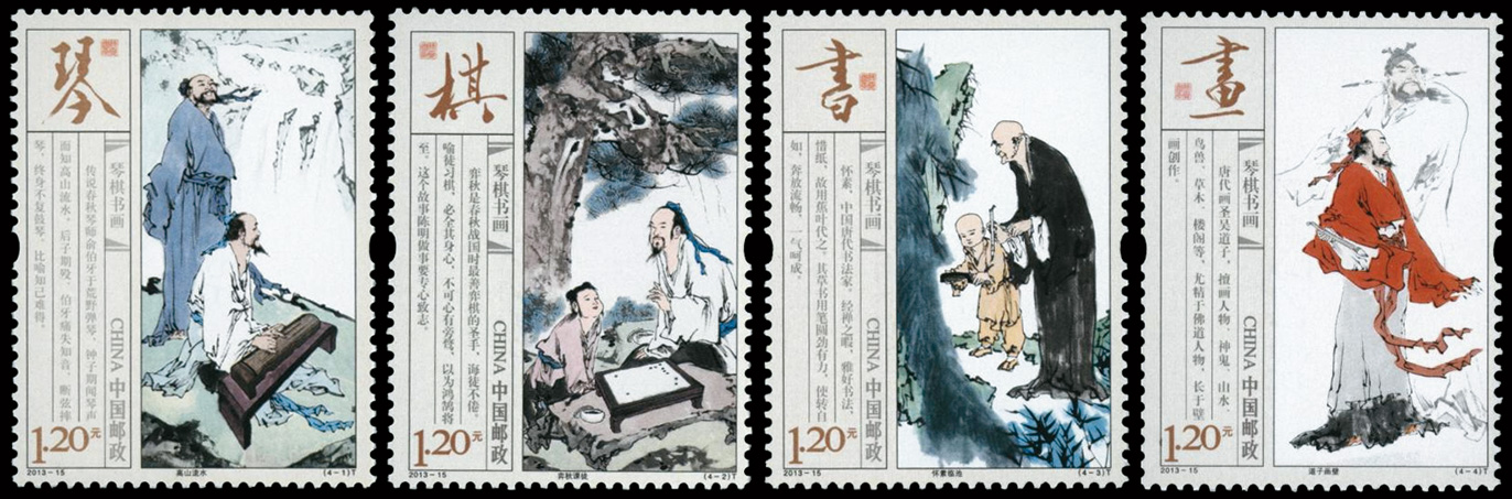 2013年第34届优秀纪念邮票&最佳设计邮票《琴棋书画》