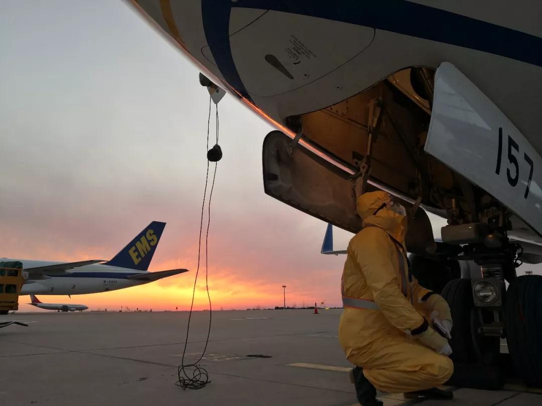 邮航武汉驻站机务对飞机进行过站检查