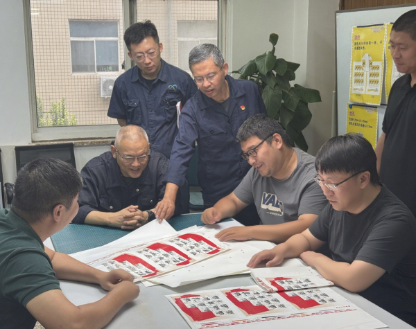 为纪念中国人民抗日战争暨世界反法西斯战争胜利八十周年,中国邮政于9月3日发行纪念邮票,北京邮票厂有限公司公司负责13枚邮票的印制工作。面对生产任务时间紧、任务重的挑战,公司上下以高度的政治责任感和历史使命感,践行“国家名片”铸造者的初心与担当,通过高效的人员组织、科学的生产调度和充足的物料保障,展现了公司“敢打硬仗、能打胜仗”的优良作风。 强化党建引领,以全员坚守彰显责任担当 公司党委高度重视,统筹部署,靠前指挥,坚决把完成此套邮票印制作为重大政治任务。党委书记亲自挂帅,第一时间主持召开专题动员会,从生产组织、质量管控、物资保障、安全稳定等方面进行全方位部署;党委成员全程带班,常态化驻守生产一线,与技术和操作人员并肩奋战,确保指令畅通、执行有力。 全体员工展现出高度的责任意识与奉献精神,自图稿下厂至打样批样、印制生产及后加工全环节迅速进入“战时状态”,各部门高效协同、联动作战。制版中心连夜攻坚处理全部图稿以适应印刷设备;印刷机台24小时打样印刷,毫不松懈;编设部持续跟进指导样张的艺术效果;完成车间、票证车间以精益求精的态度,高质高效完成邮票打孔、检查、喷码等后加工工作;公司工会持续开展全方位职工关怀保障工作,为奋战在岗位的员工发放面包、牛奶等慰问食品,做好坚实的暖心保障;质检部门构筑“人工检查+机器检查+抽查全覆盖”三道防线,严控质量关,全力保障抗战邮票印制合格率与生产进度。中鸿、物资、科技、行政、综办等部门高效协同,树立“一盘棋”思想,全力做好人员、原材料、设备、环境、安全等保障工作,为生产任务的圆满完成做足支撑。 在交货任务最关键的阶段,为确保邮票入库进度,各职能部室人员主动请缨,放弃休息时间,深入一线支援生产,帮助清扫邮票打孔纸毛,最大限度提升了邮票合格率和质量。每个人都积极主动,迅速上手,干起活来你追我赶,形成了“全员上一线,合力保生产”的动人场景。 大家心往一处想、劲往一处使,日夜奋战,舍小家顾大家,充分彰显了北京邮票厂员工“不怕苦、不怕累、敢打硬仗、能打胜仗”的优良作风。 聚焦工艺,以创新与韧性,突破生产技术瓶颈 面对前所未有的生产压力,公司充分发挥“平急两用”生产组织模式,以科学的统筹调度和高效的协同机制确保了任务顺利完成。 针对邮票发行要求高、时间紧、任务重的挑战,公司打破常规、统筹资源,同步推进工艺设计方案的试制与打样工作,实施了创新的动态调度与精准排产机制。 在接到试制图稿后,整个生产体系便进入高强度工作状态,生产调度部全方位统筹打样计划,周密部署各环节资源,按照设计方案,开展预研究、预打样及参数调试工作,多机备份,确保万无一失。生产开始后,以每半天为单位动态评估进展,按小时精准把控生产节奏,确保计划始终最优。同时,精准识别生产瓶颈,最大化提升效率。 强化物料保障,以精准预判,实现资源“零延迟”支撑 生产体系贯彻“兵马未动、粮草先行”物资保障原则,超前部署、多措并举,确保所有生产资料充足就位。 在物资储备方面,物资部门提前完成所需专用纸张、防伪油墨、印刷溶剂及配套储备多规格邮票包装箱。同时,提前完成关键设备保养与备件配置,真正做到“物资跟得上、设备靠得住、生产不断线”,为后期高效生产奠定坚实基础。 此次生产任务体现了北京邮票厂公司全体员工高度的政治责任感和使命担当,也展现出邮票人精湛的技术水平和高效的组织能力,再一次用实际行动诠释了“国家名片”铸造者的忠诚与奉献。