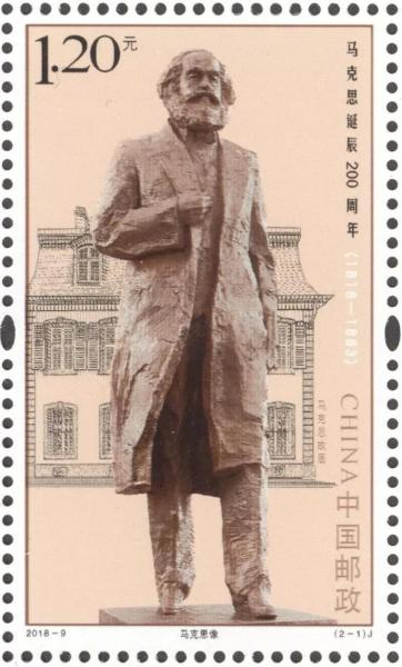 中国邮政2018年5月5日发行《马克思诞辰200周年》纪念邮票1套2枚。
