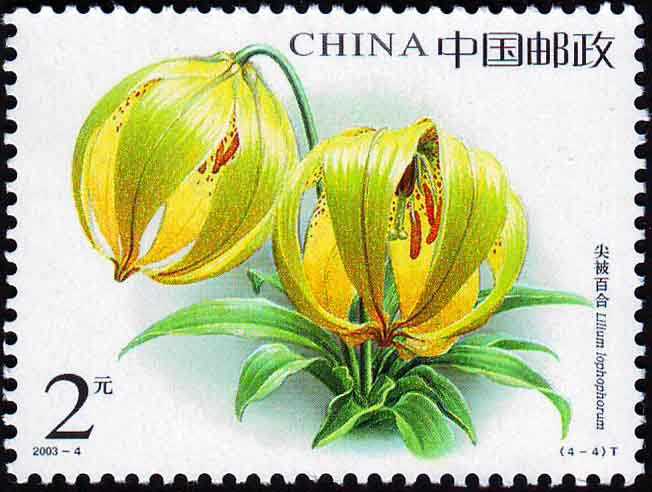 国家邮政局2003年3月5日发行《百合花》特种邮票1套4枚,小型张1枚。