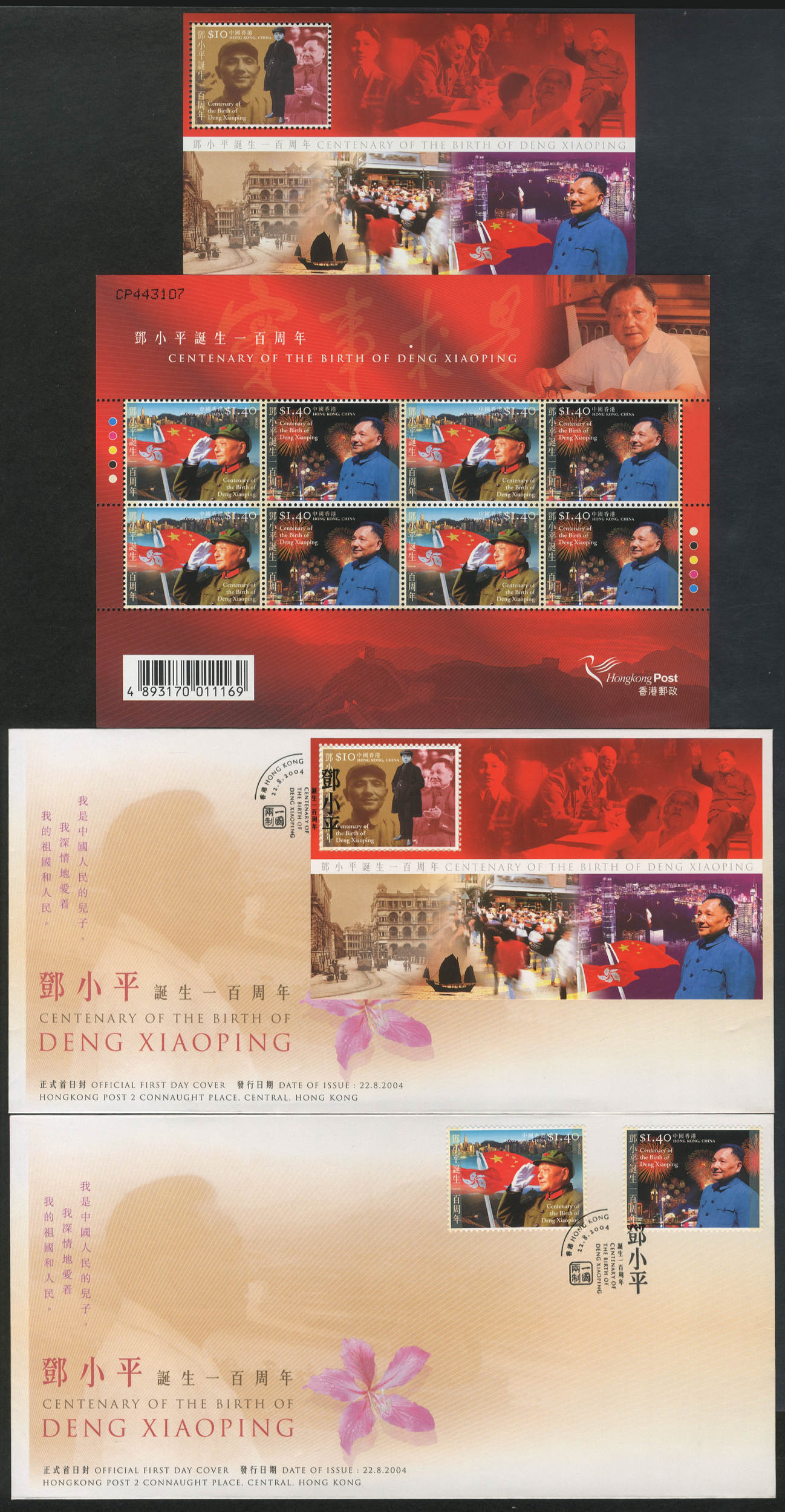 国家邮政局2004年8月22日发行《邓小平同志诞生一百周年》纪念邮票1套2枚。