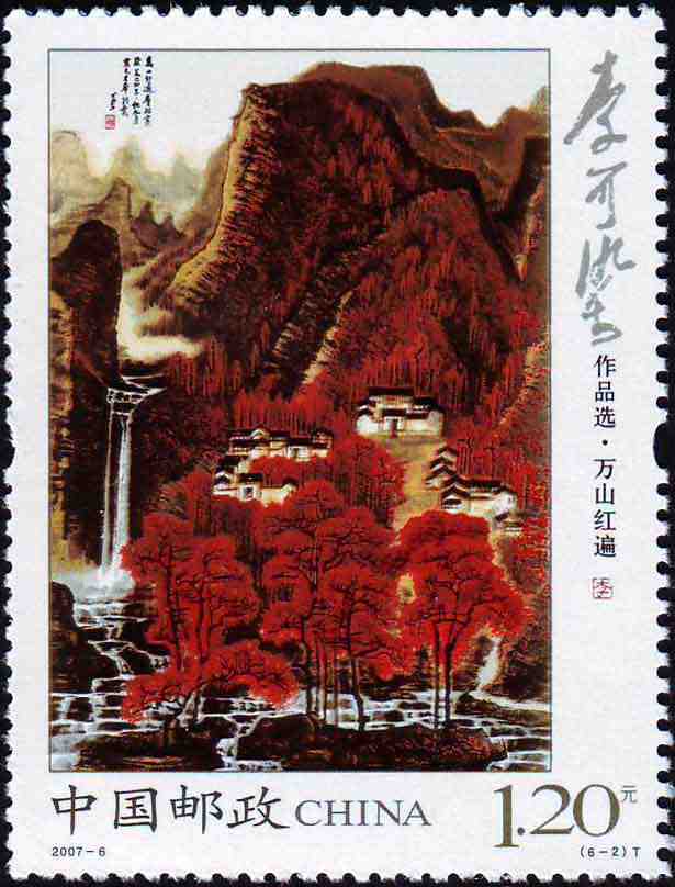 国家邮政局2007年3月26日发行《李可染作品选》特种邮票1套6枚。