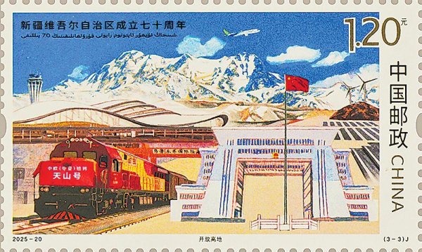 《新疆维吾尔自治区成立七十周年》纪念邮票将于9月21日发行。该套邮票1套3枚,邮票图案名称分别为:美丽新疆、团结和睦、开放高地。
