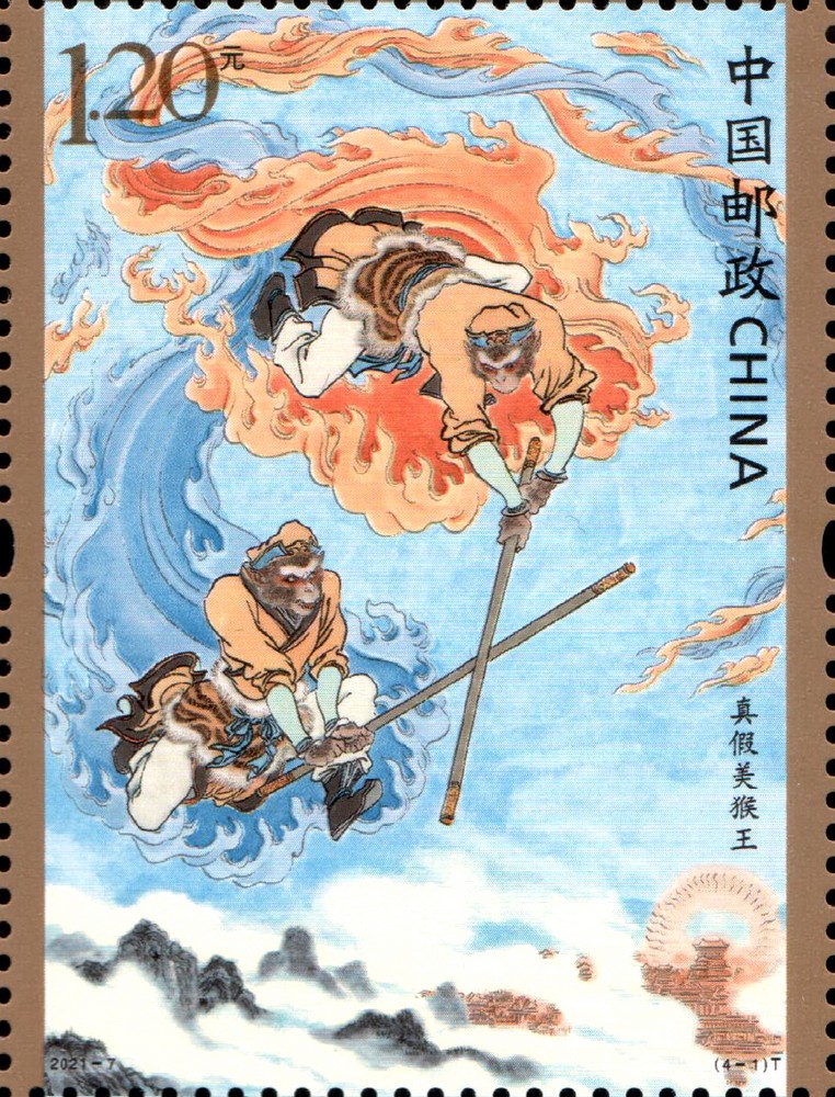 中国邮政定于2021年4月23日发行《中国古典文学名著——西游记(四)》特种邮票一套4枚。邮票图案名称分别为:真假美猴王、三调芭蕉扇、小雷音遭厄、盘丝洞遇劫。全套邮票面值为4.80元,邮票计划发行量870万套,版式二计划发行量105万版,另发行四方连邮票折一本,计划发行量13万本。