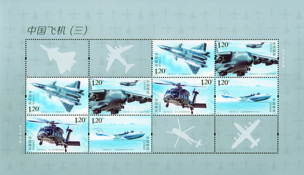 另:同时发行《中国飞机(三)》特种邮票本册1本。编号:BPC-19。规格200×200毫米(异形)。计划发行数量:10万本。售价50元。