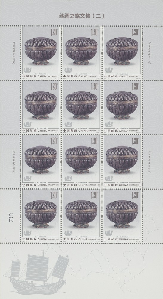 中国邮政定于2021年6月12日发行《丝绸之路文物(二)》特种邮票1套4枚。详情如下: