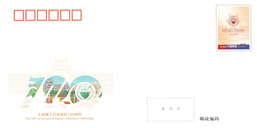 中国邮政定于2022年5月6日发行《太原理工大学建校120周年》纪念邮资信封1套1枚。详情如下: